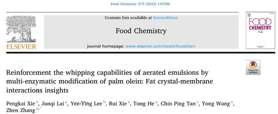 Xie Pengkai, Lai Junqi, Lee Yee-Ying, Xie Rui, He Tong, Tan Chin-Ping, Wang Yong, Zhang Zhen. (2025). Reinforcement the whipping capabilities of aerated emulsions by multi-enzymatic modification of palm olein: Fat crystal-membrane interactions insights.Food Chemistry, 475, 143390.