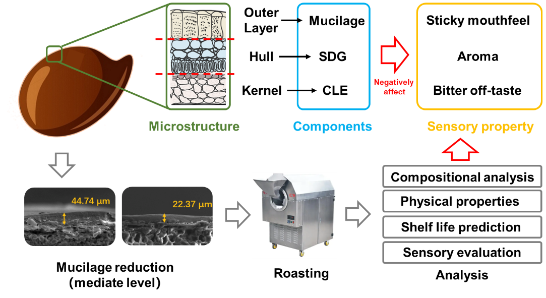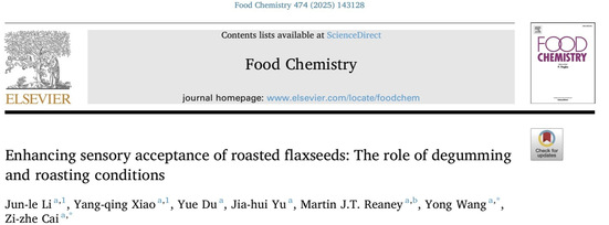 Li Jun-le, Xiao Yang-qing, Du Yue, Yu Jia-hui, Reaney Martin J.T, Wang Yong & Cai Zi-zhe. (2025). Enhancing sensory acceptance of roasted flaxseeds: The role of degumming and roasting conditions. Food Chemistry, 474, 143128.